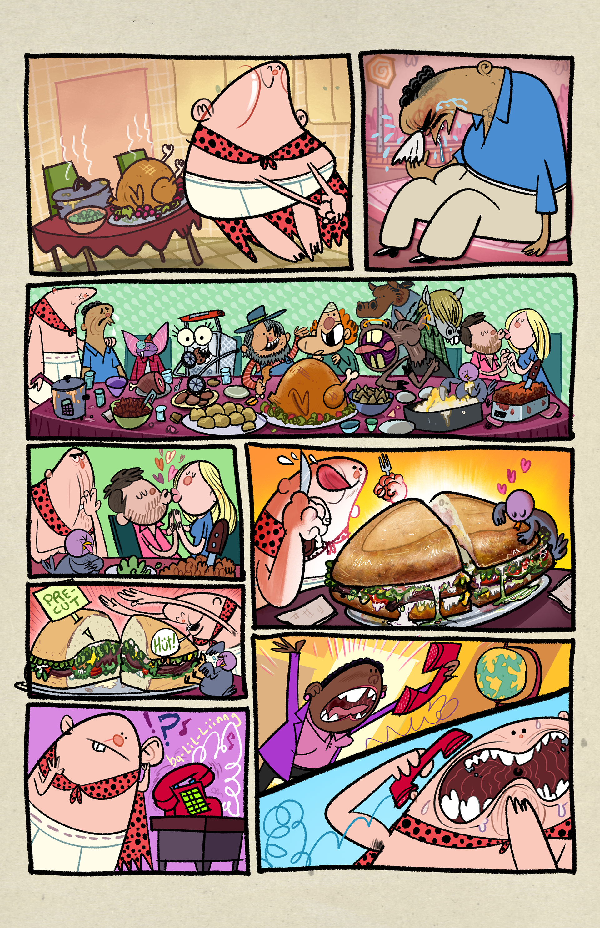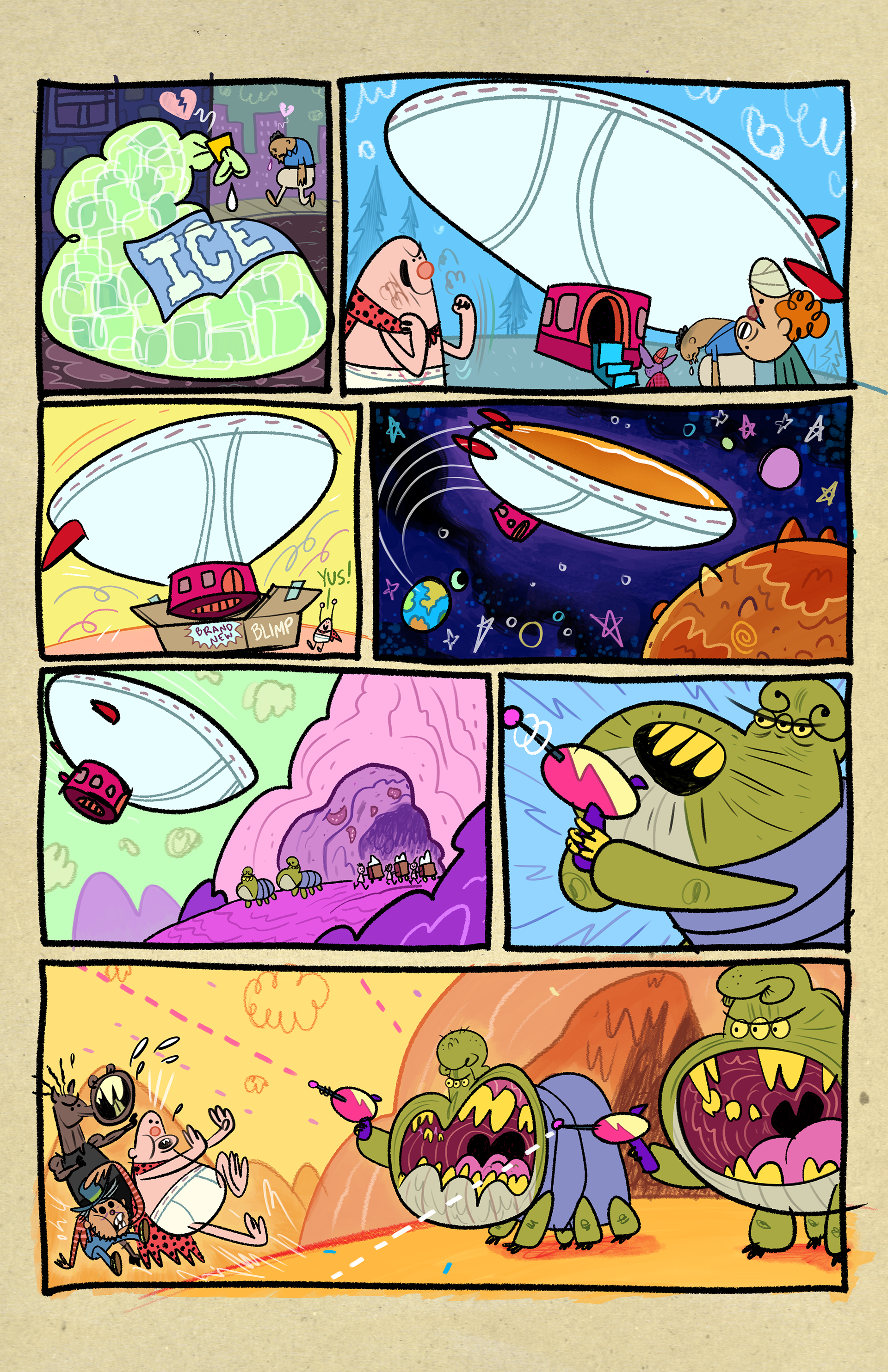 The premise is- George writes and Harold draws a comic each episode, the plots and characters related to the main story. This was right up my alley. I had been making comix since I was a kid, publishing my first at 16 years old in 1994 (stay tuned for THAT!). I wanted to capture the energy and comedy of a young punk in these drawings. Semi-trolling. Mostly just entertaining myself. The process broke down like this-Writers write the episode, Peter records his track, storyboard artists layout the panels and composition. I would draw and ink the panels over the storyboards, then on to coloring. The editors/post would work their magic and it would all come to life on your streaming device!